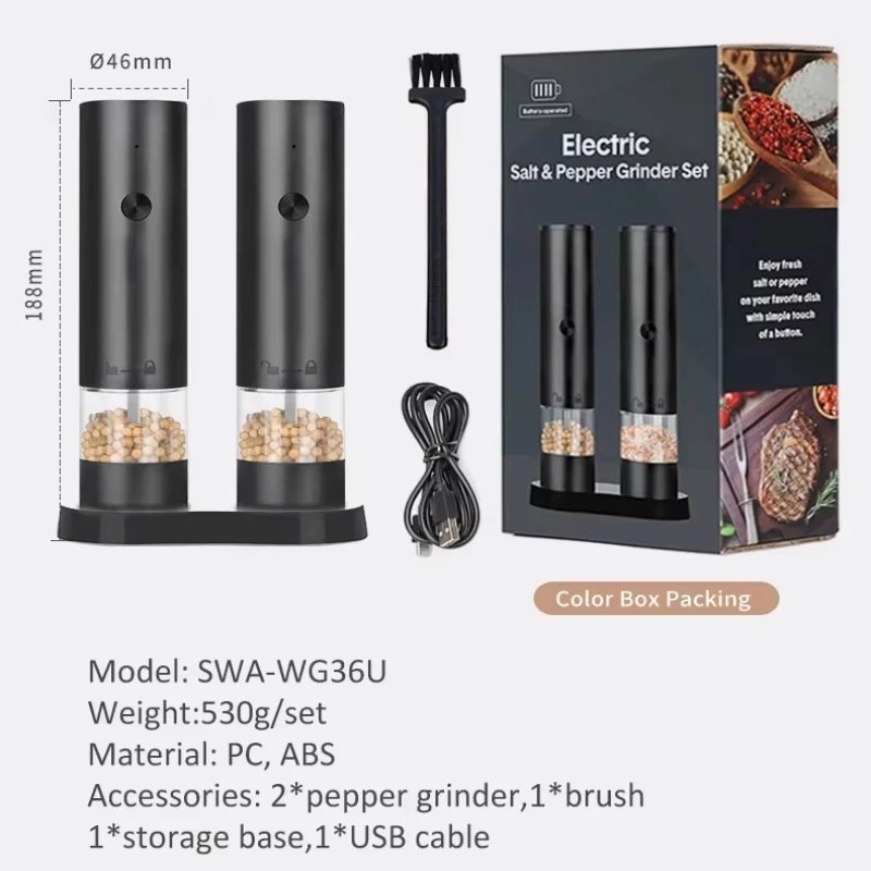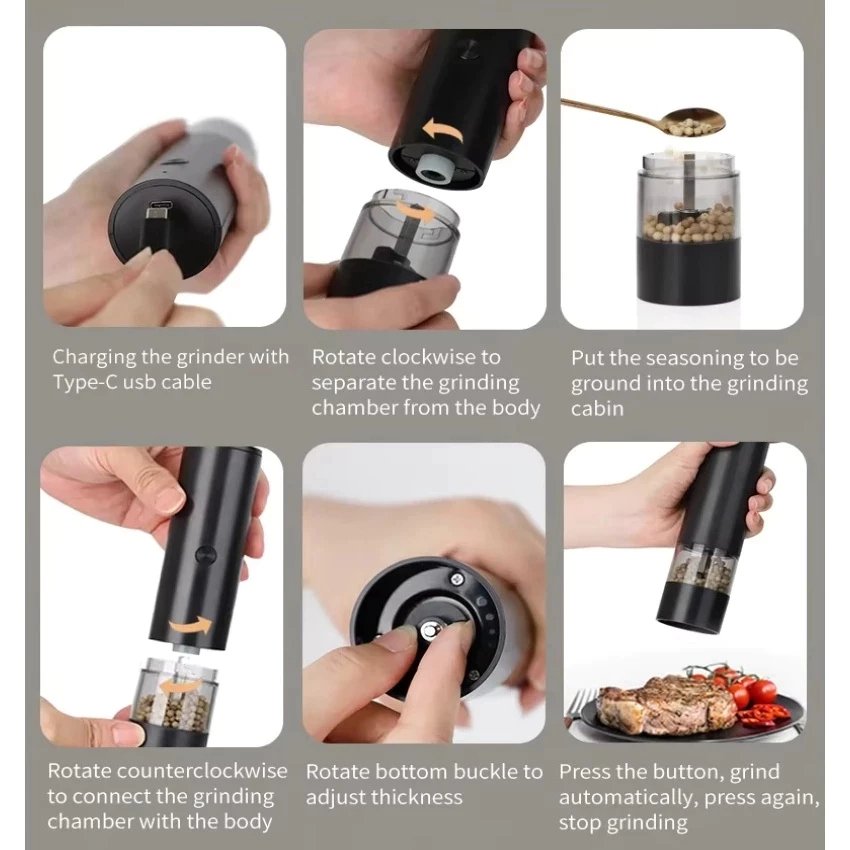 Rechargeable Automatic Salt & Pepper Grinder with LED Indicator