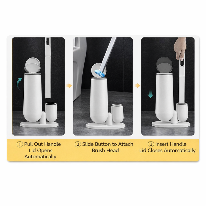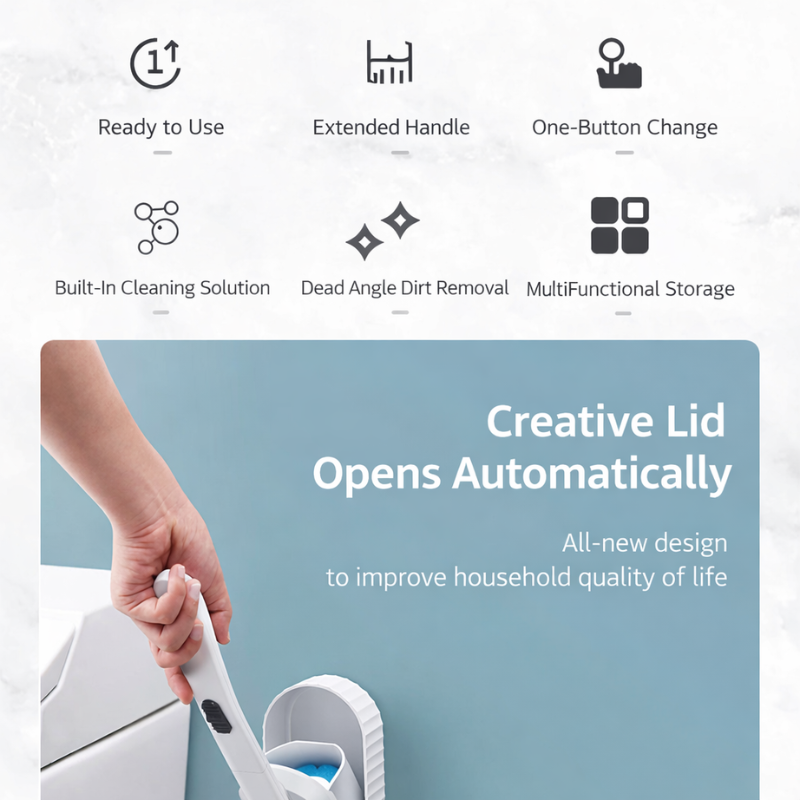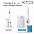Toilet Brush Set Disposable Brush Head | Wall Mounted or Base Holder | Hygienic Bathroom WC Cleaning Brush