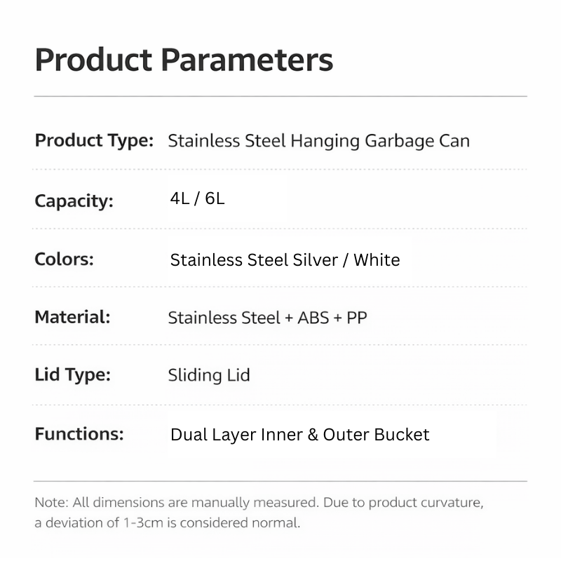 Upgrade your kitchen with a sleek, modern rubbish bin engineered for convenience, hygiene, and durability. Crafted from premium 430 stainless steel, this hanging kitchen bin keeps waste discreetly out of sight while freeing up valuable floor space—perfect for compact kitchens, cabinets, and countertops.