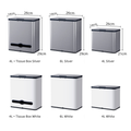 Inner and outer bucket structure securely holds trash bags in place while keeping waste hidden for a neat, premium look.