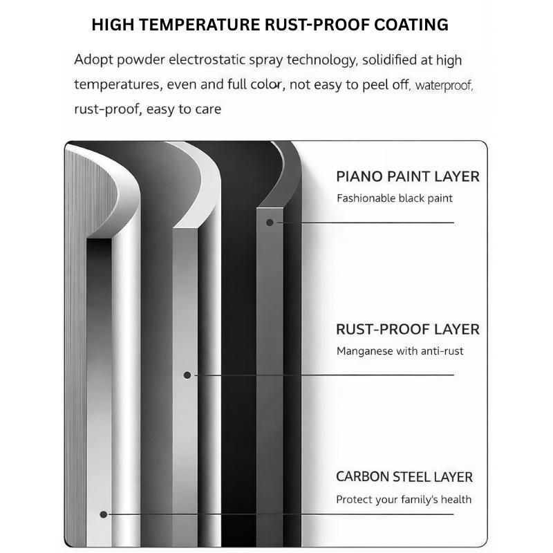Specially treated metal surface resists rust and corrosion, suitable for humid environments and long-term daily use.